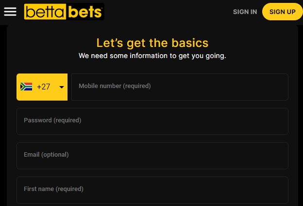 - Visit the official www.bettabets.co.za site from your mobile phone