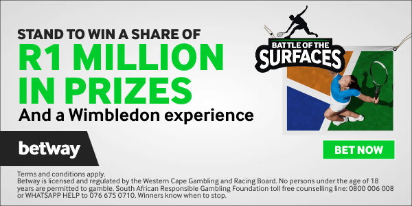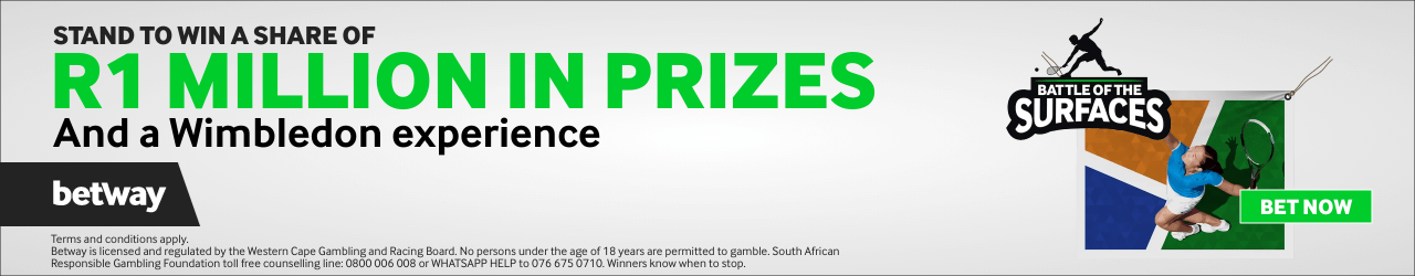 Betway are celebrating all things tennis with their Battle of the Surfaces promotion, running from 22 May to 11 September 2022. There is a total of R1 Million in prizes up for grabs, including 100 x R100 daily free bets, a grand prize of R100,000 and an all expenses paid trip to Wimbledon 2023. Visit Betway to make your qualifying picks and bets. Here’s how to enter the promotion;