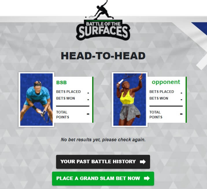 All bets MUST be placed on the Grand Slam fixtures of the day in order to qualify for points in the Head to Head battle. Bets will need to settle on the same day as the bet placed.