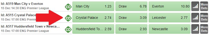 In the game Southampton vs Arsenal, we bet R100 for an Arsenal win at odds of 19/20. Which would give us a profit of R95 should Arsenal win.