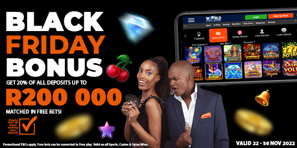 Get 20% of ALL your deposits up to R200,000 matched in Free Bets with WSB this Black Friday.