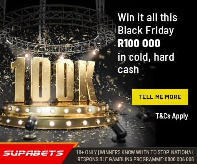 - Participants will be entered into the draw to win R100 000 cash if they have also placed a bet of R50 or more on Supabets from 05:00 to 23:59 on Black Friday, 25th November 2022.