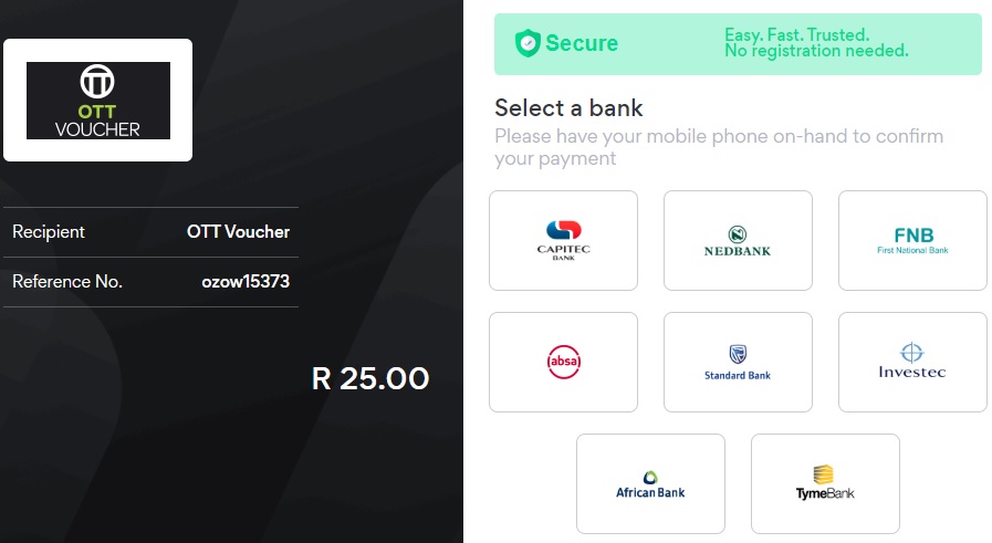 Buying an OTT voucher online for yourself or for your friends is now easier than ever thanks to the new OTT online voucher site. Punters can now easily purchase vouchers from as little as R5, up to a maximum of R5000. They are now available for purchase on the OTT site.