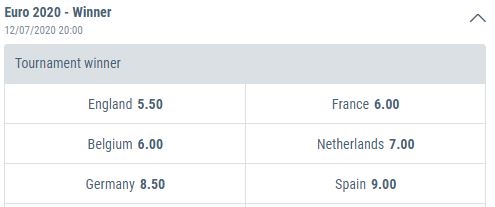 The host nation England are the outright favourite to lift the Euro 2020 trophy at odds of 9/2. Another country will still qualify in March to join England in Group D along with Croatia and Czech Republic. England have been historically poor in international tournaments but with some of the world’s best rising young talent in their squad today, this might just be their year.
