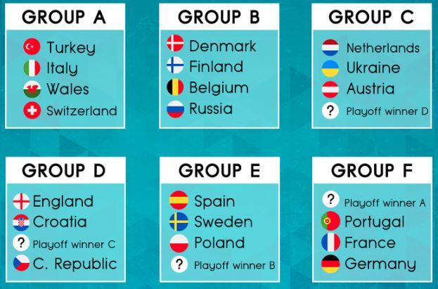 The groups for the upcoming Euro 2020 have been announced. There are an additional four sides that will be added to the groups once the play off winners have been decided.