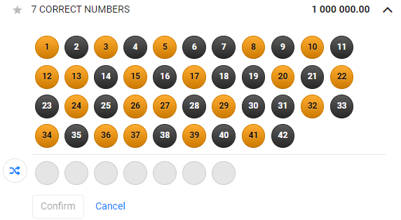 “Betway Lucky 7” or “7 out of 42” is a dynamic game based on a lottery. Players are offered a wide range of betting outcomes and winning bets can return a profit up to a million times more than the stake.