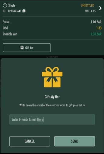 - If your friend accepts the gift then the bet will be transferred to their bets