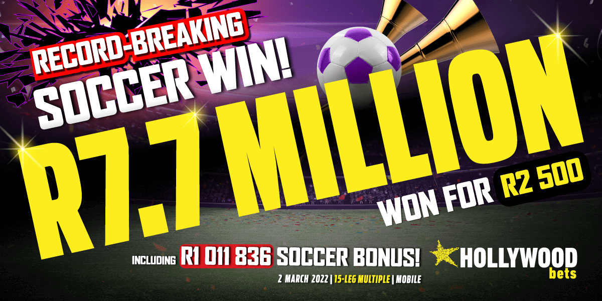 Congratulations to the punter who picked up a life changing sum of money, as much as you’d win from the playing the Lotto! We’re also confident that this is the biggest sports betting win ever in South Africa. The benefits of the Soccer Bonanza boost are also clear for all to see, as the 15% boost translated in to an extra R1 Million. Hopefully we’ll see some more big wins like this soon, as the maximum soccer win at Hollywoodbets is R20 million.