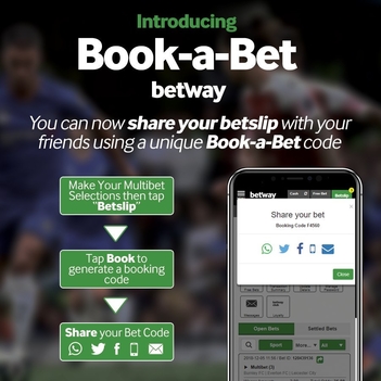 Betway Book a Bet lets you share any of your Betway SA bets with your friends via your platform of choice. The feature is only available for pre-match sports events on mobile, so booking codes for a game that has gone live, or resulted won’t work. You are also able to share your bets while using the Data Free site, and your friends are able to place bets using codes on the Betway Data Free app too.
