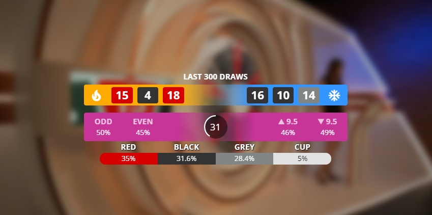 The gameplay is now automatic and the wheel starts once the presenter hits the play button. As the wheel spins there are some dazzling lighting effects that take place and you’ll also notice that the camera has several viewing angles making for a much more organic and immersive experience. The presenters are also much more chatty and from time to time they will throw in some interesting stats on what other players are betting on.