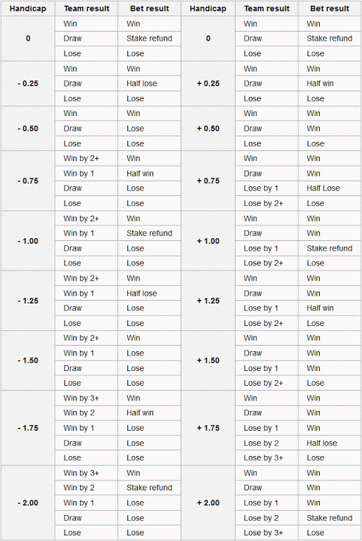 Below is a table to guide you through Asian Handicaps and what they mean: