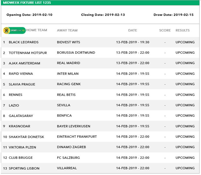 Sportstake Fixtures are released often on the Ithuba website and can be directly accessed here.