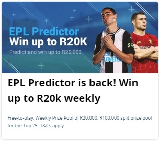 Free to play Premier League Predictor game with up to R20,000 in weekly prizes. Sportingbet are also offering a 100% deposit match up to R2000 for new customers. Read more about Sportingbet