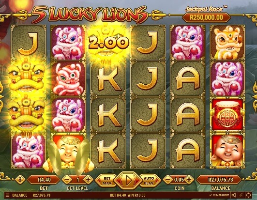 It’s also packed with features, giving player the chance to pick up wilds and scatters during gameplay, which help multiply your winnings. There’s also free games to win (free spins) and the max win is a whopping R2 Million! 5 Lucky Lions is recommended for players who have a good grasp on how the Spina Zonke games work, and might not be for beginners or new players as the paylines can be somewhat overwhelming.