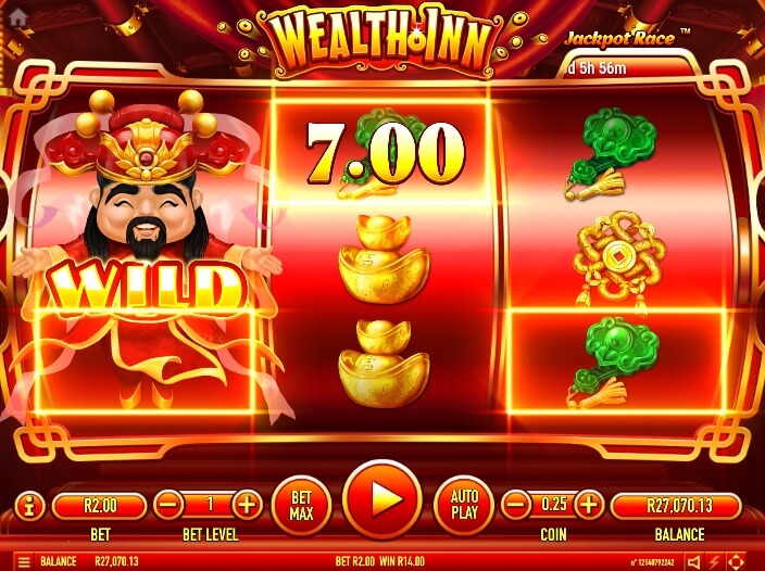Another bonus of Wealth Inn is that it’s the most accessible game on Spina Zonke, with the minimum spin starting at only 16c for all pay lines. Which is significantly lower than than Christmas Gift Rush, which starts at 20c a spin. Wealth Inn is perfect for beginners and experienced slots players, and comes highly recommended by us.