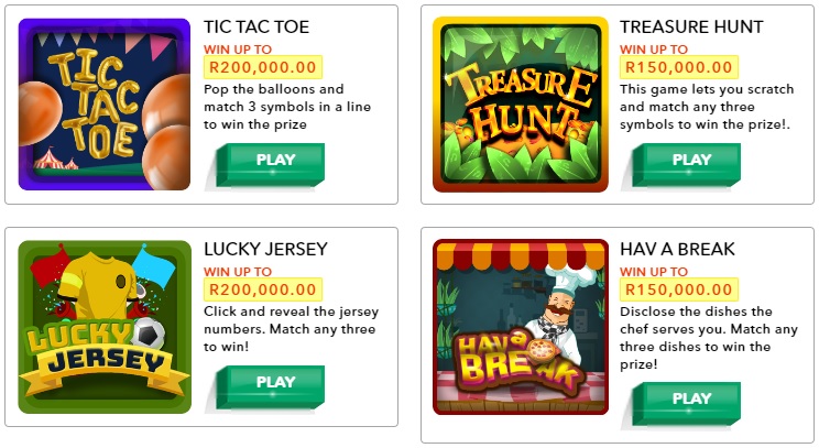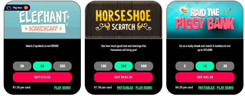 The South African National Lottery site, powered by Ithuba, do have a wide variety of scratch card style games on offer. You can play from a minimum bet of R3 for some cards, with prizes go up to a max of R200,000. These aren’t great to play in our honest opinion, but might appeal to players who already have a SA online account.