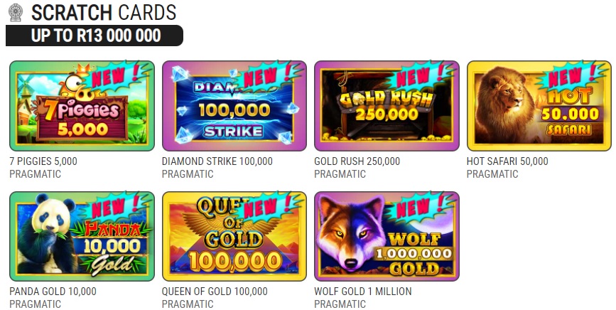 There are a good number of online betting sites offering scratch cards, but too be honest the games aren’t all that fun. They are dumbed down versions of slots games, and can be very frustrating and slow to play. If scratch cards are your thing then there’s enough on offer at different price points to keep you occupied, but if they are not your thing then try out the slots inspired Spina Zonke from Hollywoodbets instead.